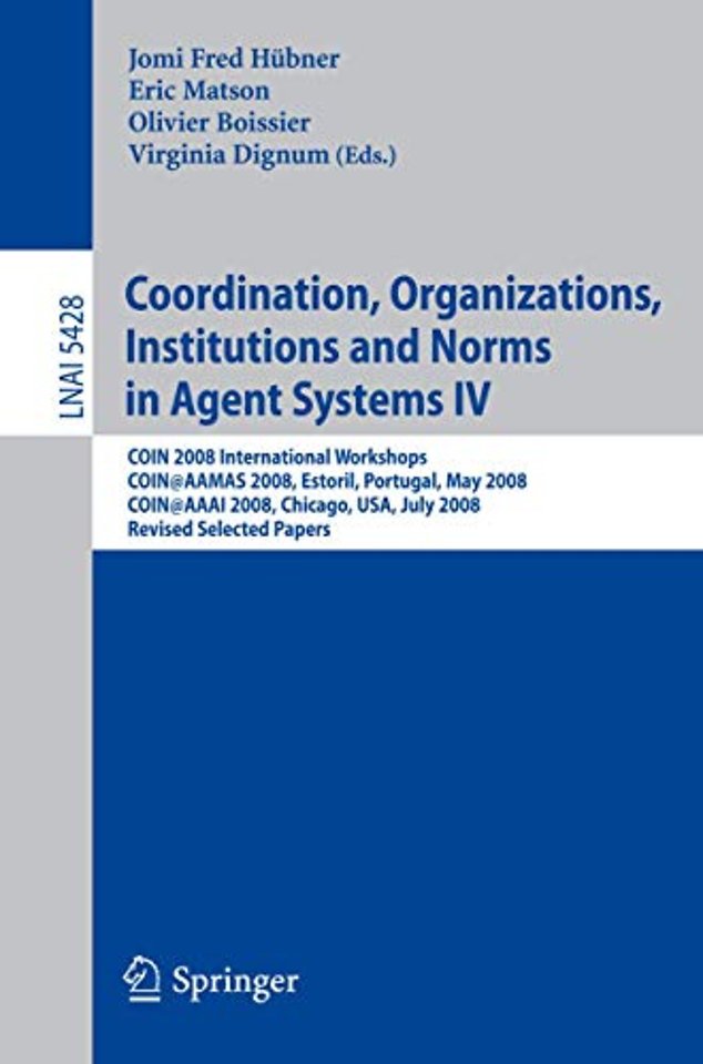 This book constitutes the thoroughly refereed post-workshop proceedings of the International Workshop on Coordination, Organization, Institutions and Norms in Agent Systems, COIN 2008, held as two events at AAMAS 2008, the 7th International Joint Conference on Autonomous Agents and Multiagent Systems in Estoril, Portugal, in May 2008 and at AAAI 2008, the 23rd AAAI Conference on Artificial Intelligence in Chicago, IL, USA, in July 2008. This volume is the 4th in a series focussing on issues in Coordination, Organizations, Institutions and Norms (COIN) in multi-agent systems. The 17 papers contained in this volume are the revised and extended versions of a selection of papers presented and discussed in these two workshops. The papers are organized in the following topical sections: from coordination to organization, from organization to coordination, formalization of norms and institutions, design of norms and institutions, as well as applications.