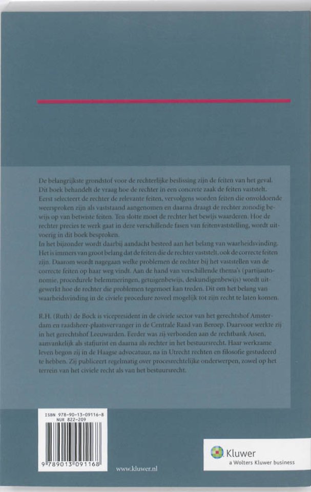 De belangrijkste grondstof voor de rechterlijke beslissingen zijn de feiten van het geval. Hoe de rechter precies te werk gaat in de verschillende fasen van feitenvaststelling, wordt uitvoerig in dit boek besproken. Daarbij wordt vooral aandacht besteed aan het belang van waarheidsvinding.