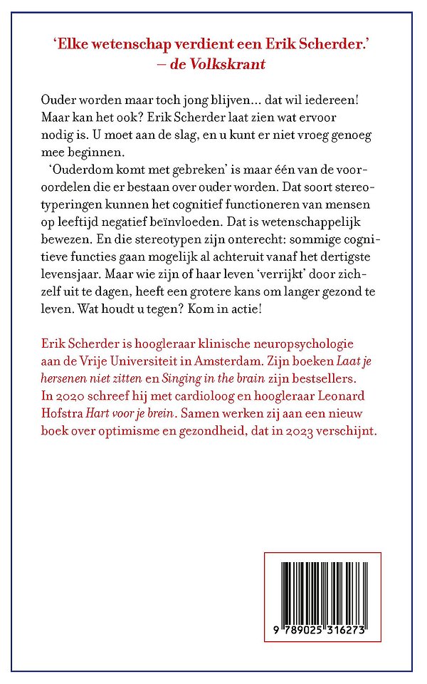 Ouder worden maar toch jong blijven... dat wil iedereen! Maar kan het ook? Erik Scherder laat zien wat ervoor nodig is. U moet aan de slag, en u kunt er niet vroeg genoeg mee beginnen.