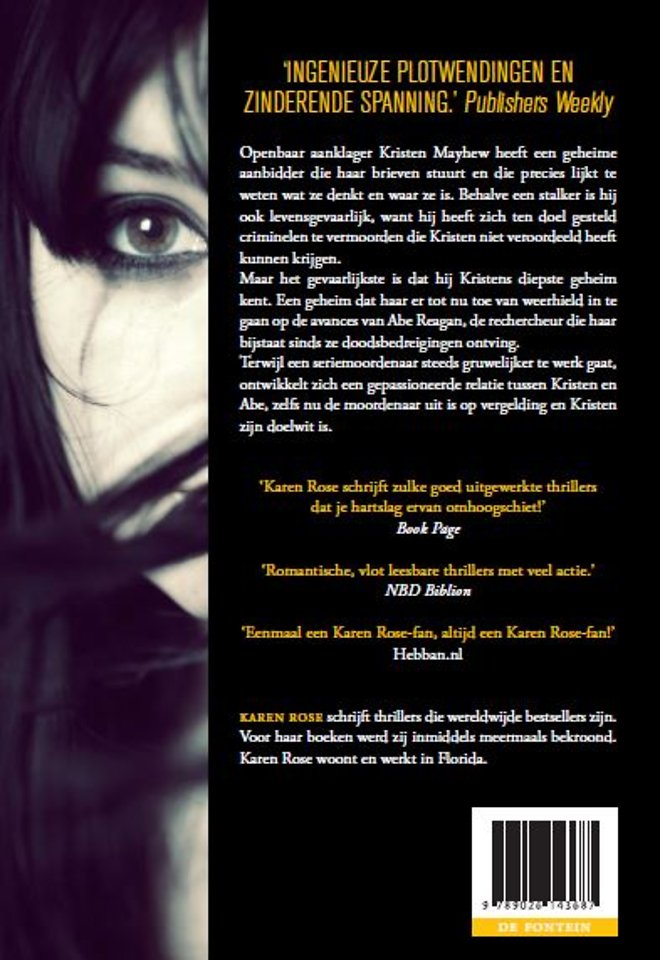 Maar het gevaarlijkste is dat hij Kristens diepste geheim kent. Een geheim dat haar er tot nu toe van weerhield in te gaan op de avances van Abe Reagan, de rechercheur die haar bijstaat sinds ze doodsbedreigingen ontving.
