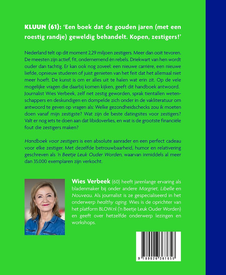 Journalist Wies Verbeek, zelf net zestig geworden, sprak tientallen wetenschappers en deskundigen en dompelde zich onder in de vakliteratuur om antwoord te geven op vragen als: Welke gezondheidschecks zou ik moeten doen vanaf mijn zestigste? Wat zijn de beste datingsites voor zestigers? Valt er nog iets te doen aan dat libidoverlies en wat is de grootste financiële fout die zestigers maken?
