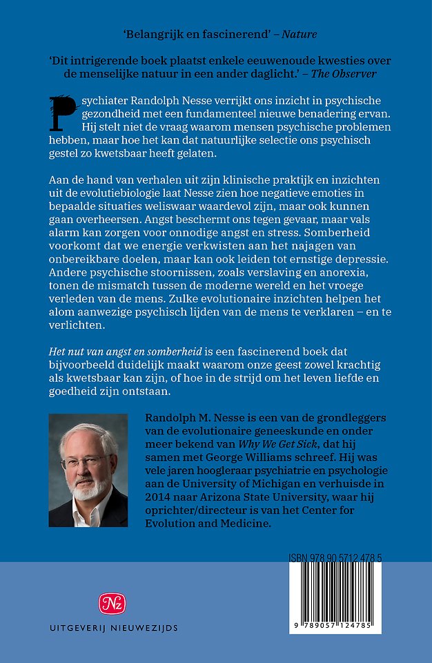Aan de hand van verhalen uit zijn klinische praktijk en inzichten uit de evolutiebiologie laat Nesse zien hoe negatieve emoties in bepaalde situaties weliswaar waardevol zijn, maar toch vaak overweldigend worden. Angst beschermt ons tegen gevaar, maar vals alarm is onvermijdelijk. Somberheid voorkomt dat we energie verkwisten aan het najagen van onbereikbare doelen, maar kan ook leiden tot ernstige depressie.